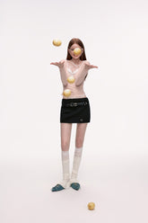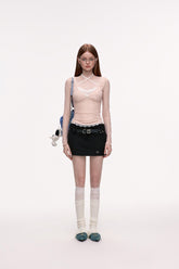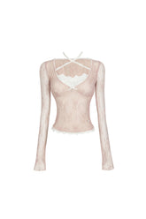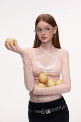 Bow knot and pleated lace embellishment, full of girlishness - Fabrics:Pink lace body fabric: 83.7% nylon 16.3% spandex