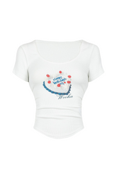 - The "S" series of large round neck printed T-shirts all reveal the purity and beauty of girls. The high-elastic knitted fabric has a delicate feel, is soft and skin-friendly, and the food prints are colorful and cute.