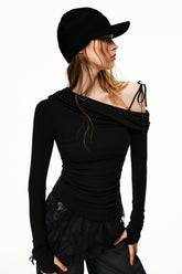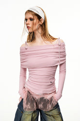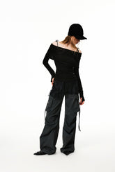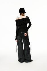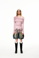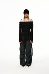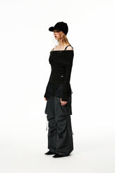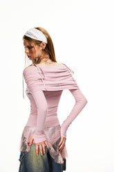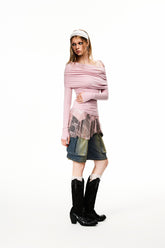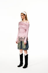 • A knitted T-shirt with a drop neck that can be worn multiple times. The fit is tight and has plenty of room for your body. It is very tolerant and will not feel restrictive. The lapel is stacked to cover the arm flesh, making it more sexy and elegant. The off-shoulder neckline creates a hazy and pure feeling. The shell logo on the hem adds brand attributes. A variety of colors are available to meet different dressing styles.